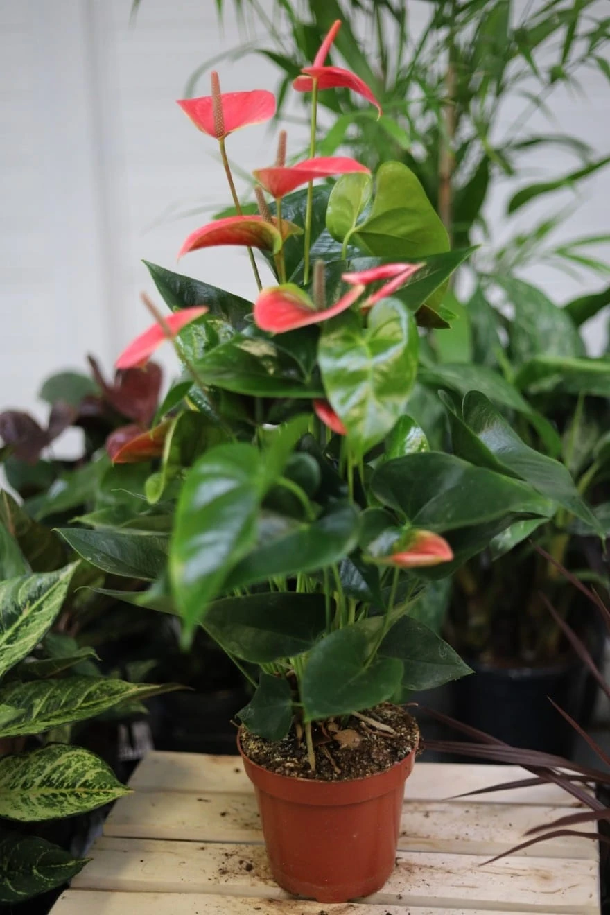 Anthurium 'Sweet Dream' najlepiej rośnie w jasnym miejscu z rozproszonym światłem- zbyt intensywne słońce może przypalić liście, a zbyt głęboki cień ograniczy kwitnienie. Podłoże powinno być przepuszczalne, żyzne i lekko kwaśne– dobrze sprawdzi się mieszanka torfu, kory i perlitu. Podlewaj regularnie, pozwalając ziemi lekko przeschnąć między podlewaniami- unikaj przelania. Roślina preferuje podwyższoną wilgotność powietrza, dlatego warto ją zraszać lub ustawić w pobliżu nawilżacza. Nawożenie co 2-3 tygodnie nawozem do roślin kwitnących wspomaga rozwój kwiatów i liści. Kwiatostany należy usuwać po przekwitnięciu, co zachęci roślinę do dalszego kwitnienia.